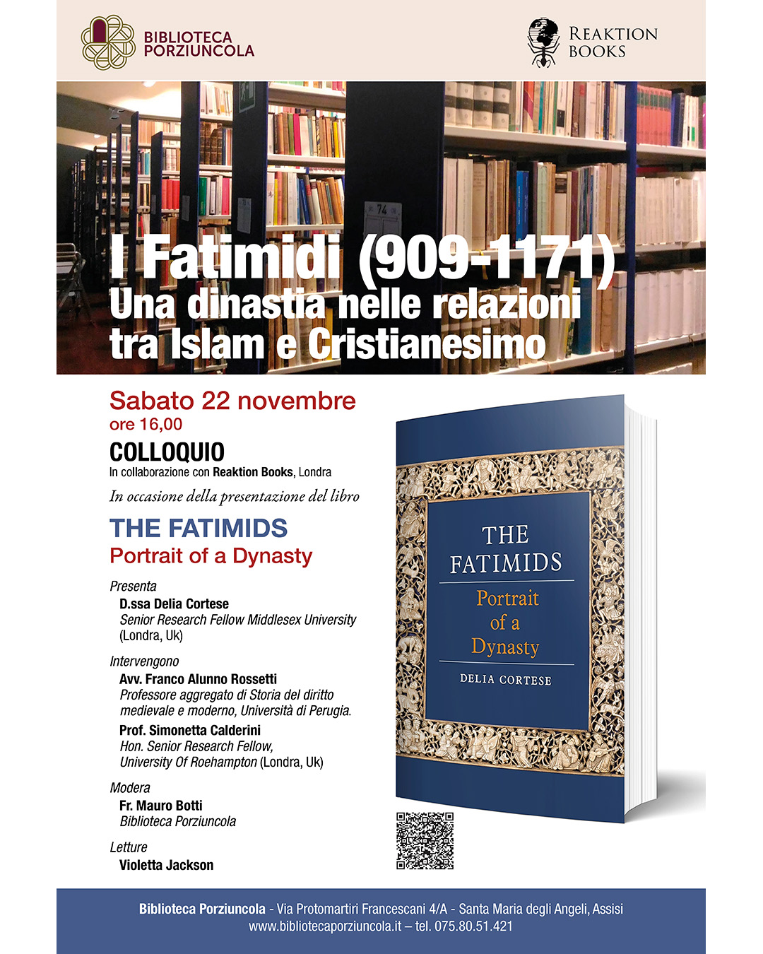 Le notizie si fanno più circostanziate a partire dal 1759-60, grazie alle informazioni del Memoriale della Porziuncola (1705-1838), che parla della decisione della comunità di dare una sede più idonea alle ricche raccolte librarie in rapido aumento. Il locale, allora predisposto, esiste ancora oggi, sebbene modificato nel 1957; l'ampio e solenne portale in marmo, che ne riporta la data di costruzione, "MDCCLIX", conferma la notizia del Memoriale.